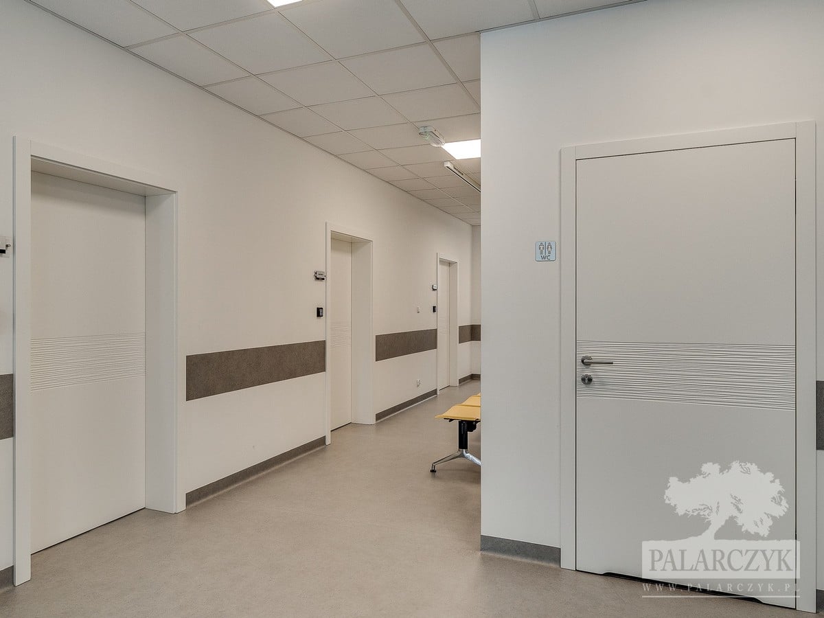 Nasza firma miała przyjemność zrealizować projekt dla NZOZ „Na Rondzie” w Żorach. Drzwi w kolorze białym, ozdobione unikalnym frezowaniem w strefie klamki, stanowią wyjątkowy element aranżacji tego obiektu. Dzięki nim wnętrze zyskuje nie tylko praktyczny aspekt, ale także indywidualny i stylowy charakter.