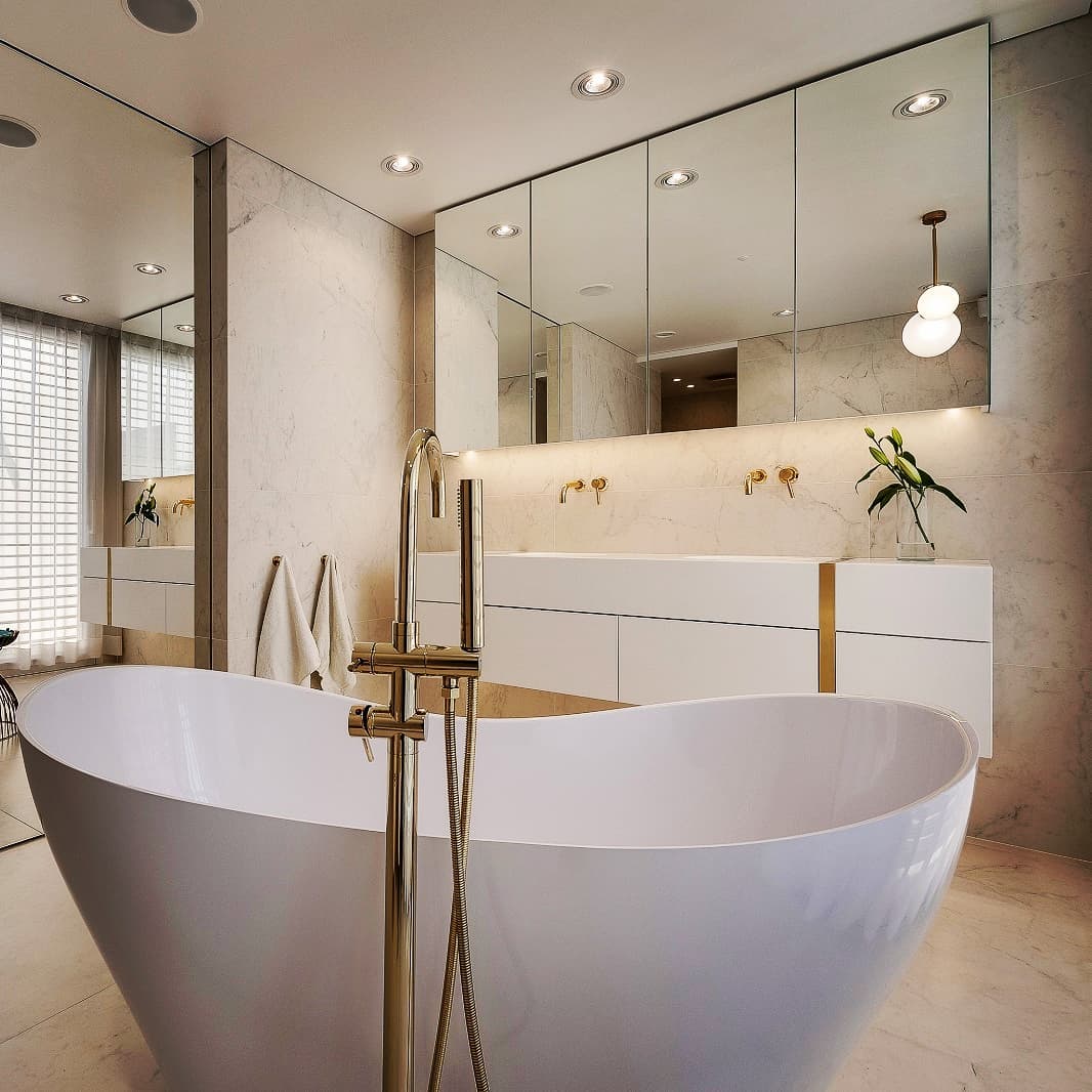Prezentowana na zdjęciu szafka łazienkowa to nie tylko wyraz funkcjonalności i elegancji, ale także symbolem innowacyjności. Wykonana z dbałością o najdrobniejsze detale, ta szafka reprezentuje połączenie nowoczesnego designu z praktycznymi rozwiązaniami, które znacząco podnoszą komfort użytkowania.Blat tej szafki został wykonany w technologii Staron®, co oznacza, że jest bezspoinowy. Dzięki temu umywalka zintegrowana z blatem zapewnia nie tylko elegancki wygląd, ale także lepszy komfort mycia, eliminując trudności związane z czyszczeniem spoin. Co więcej, materiał Staron® sprawia, że łatwo go zregenerować w razie potrzeby, co przedłuża trwałość i estetykę szafki.Konstrukcja podwieszana sprawia, że szafka jest nie tylko funkcjonalna, ale także lżejsza w odbiorze, nadając łazience minimalistyczny charakter. Fronty i boki szafki z lustra dodają optycznej lekkości, a drzwi przesuwne z lustrem na całej powierzchni, chowane w ścianę w systemie bez ościeżnicowym, harmonijnie komponują się z resztą aranżacji.